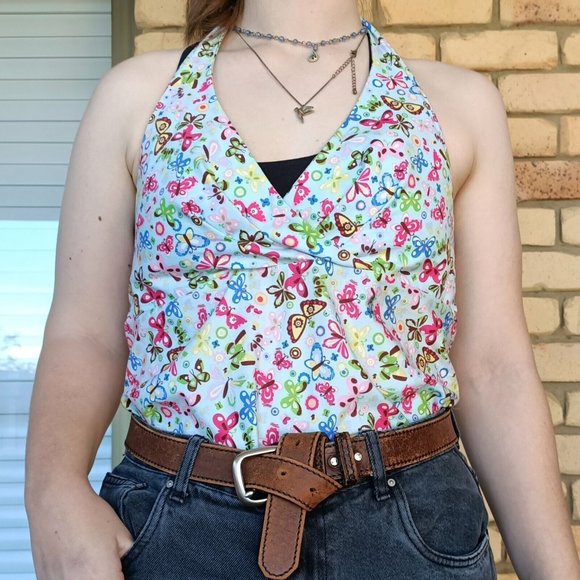 Handmade Tops Vintage Y2k Size 12 Top Blue Halter Tank Homemade Pleated Butterfly 2000s Poshmark